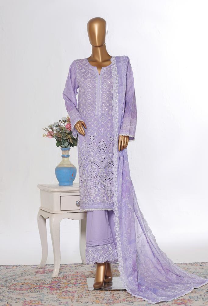 Bin Saeed Luxury Lawn White & White Chickenkari Embroidery 3Piece Stitched COLLECTION 2026. D-03