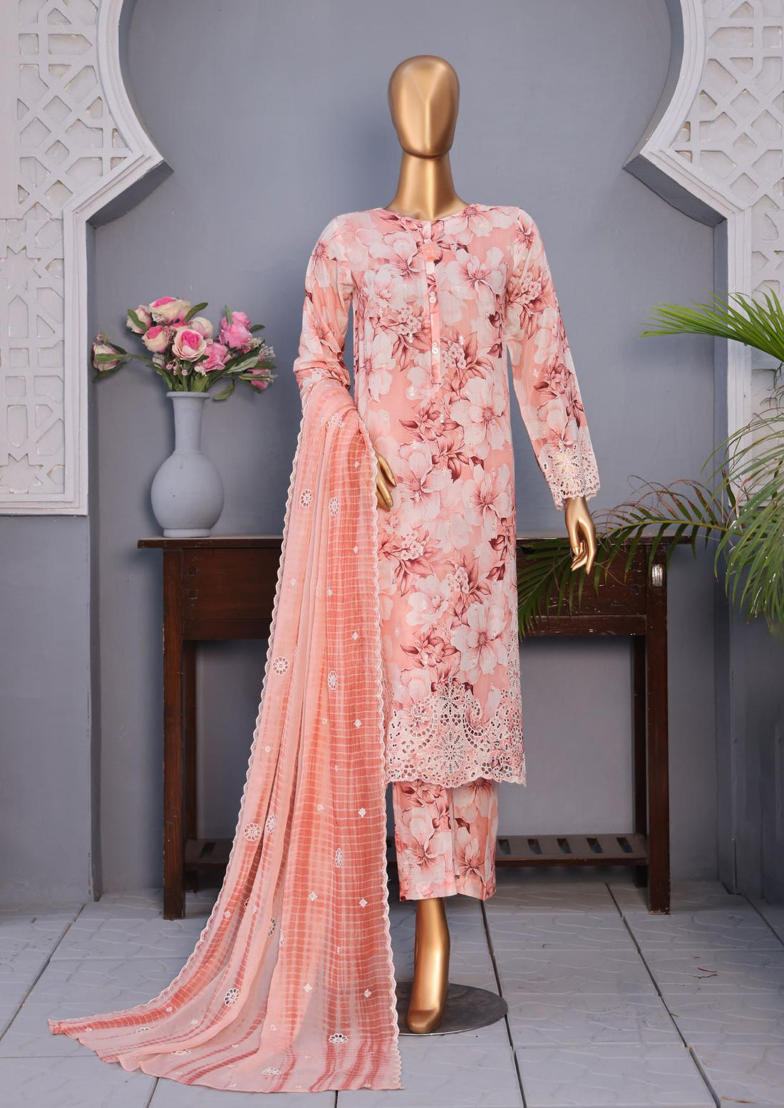 Hz Ready To Were Cotton Sunehri Paste Print With Embroidery Stitched Collection 2025. D-61 T Pink