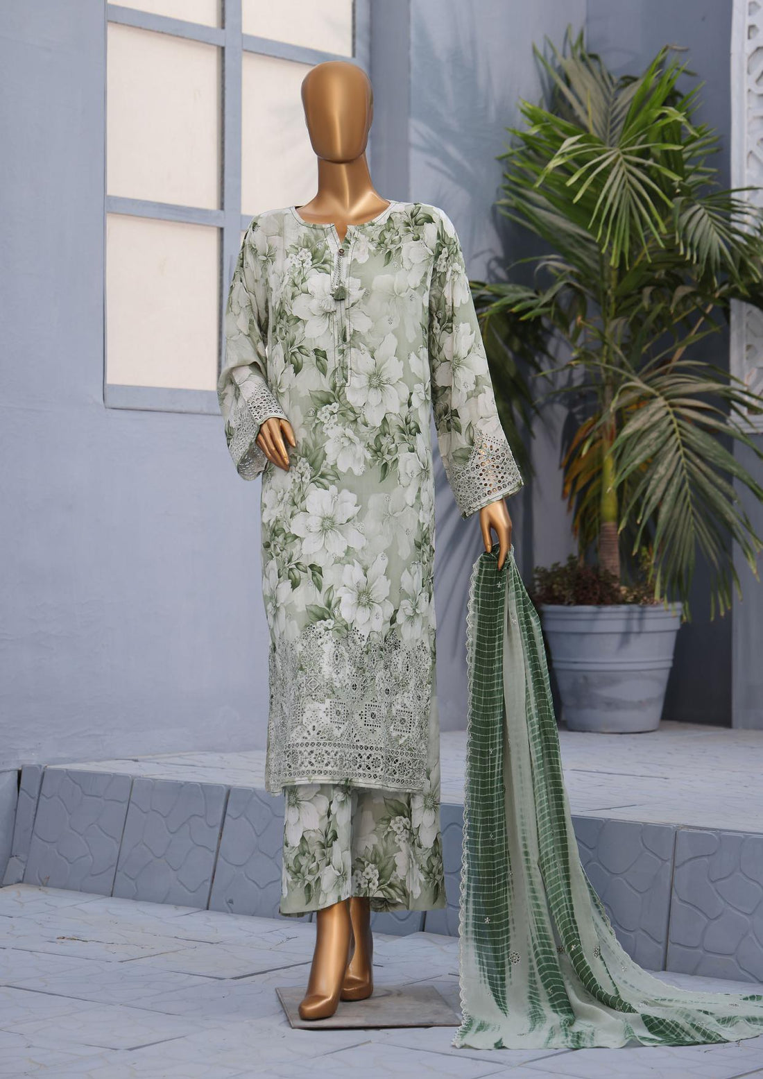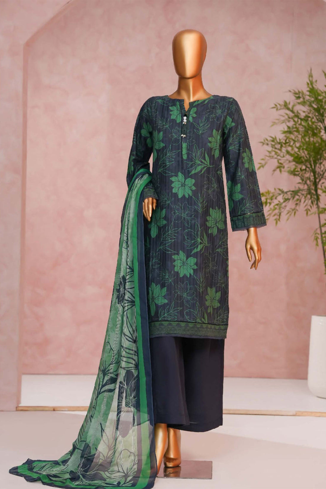 Hz Ready To Were Cotton Sunehri Paste Print With Embroidery Stitched Collection 2025. D-64 C Green