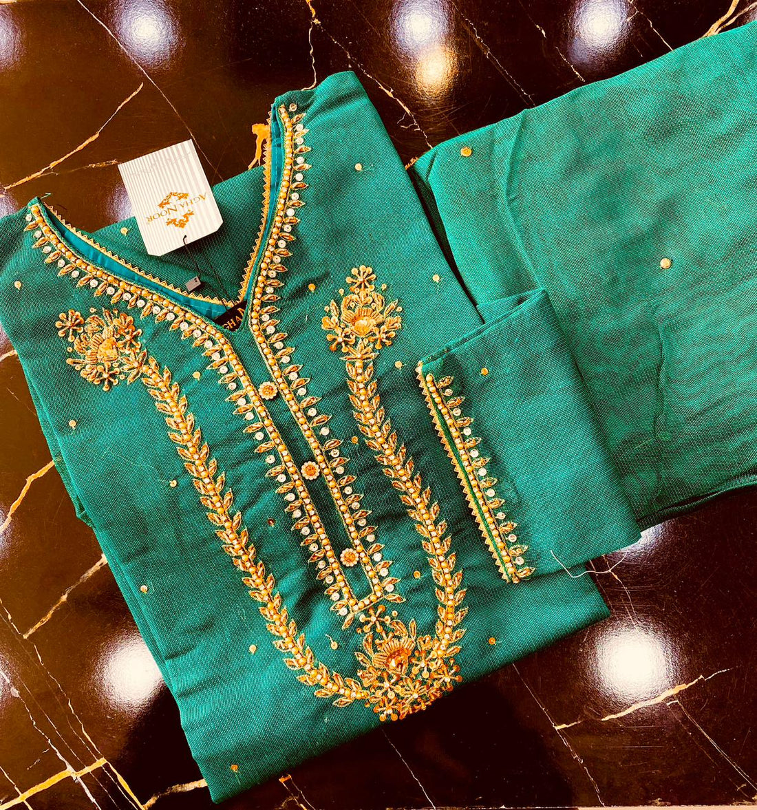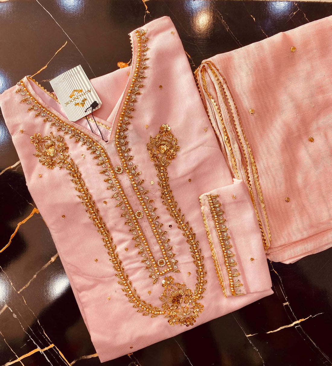 • Rtw Khaddi Net Handwork Embrodered Shirt • With Khaddi Net Chaan Work On Dupatta ...