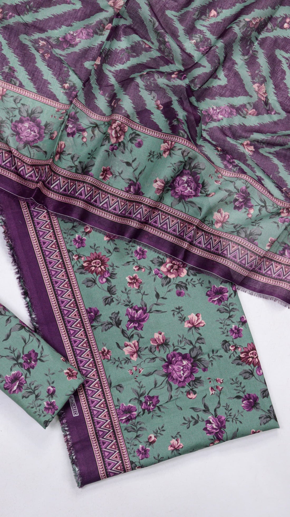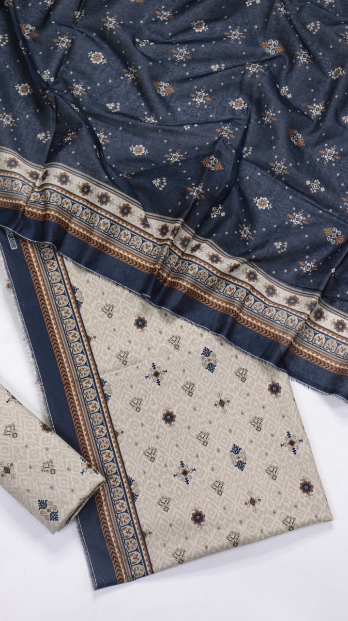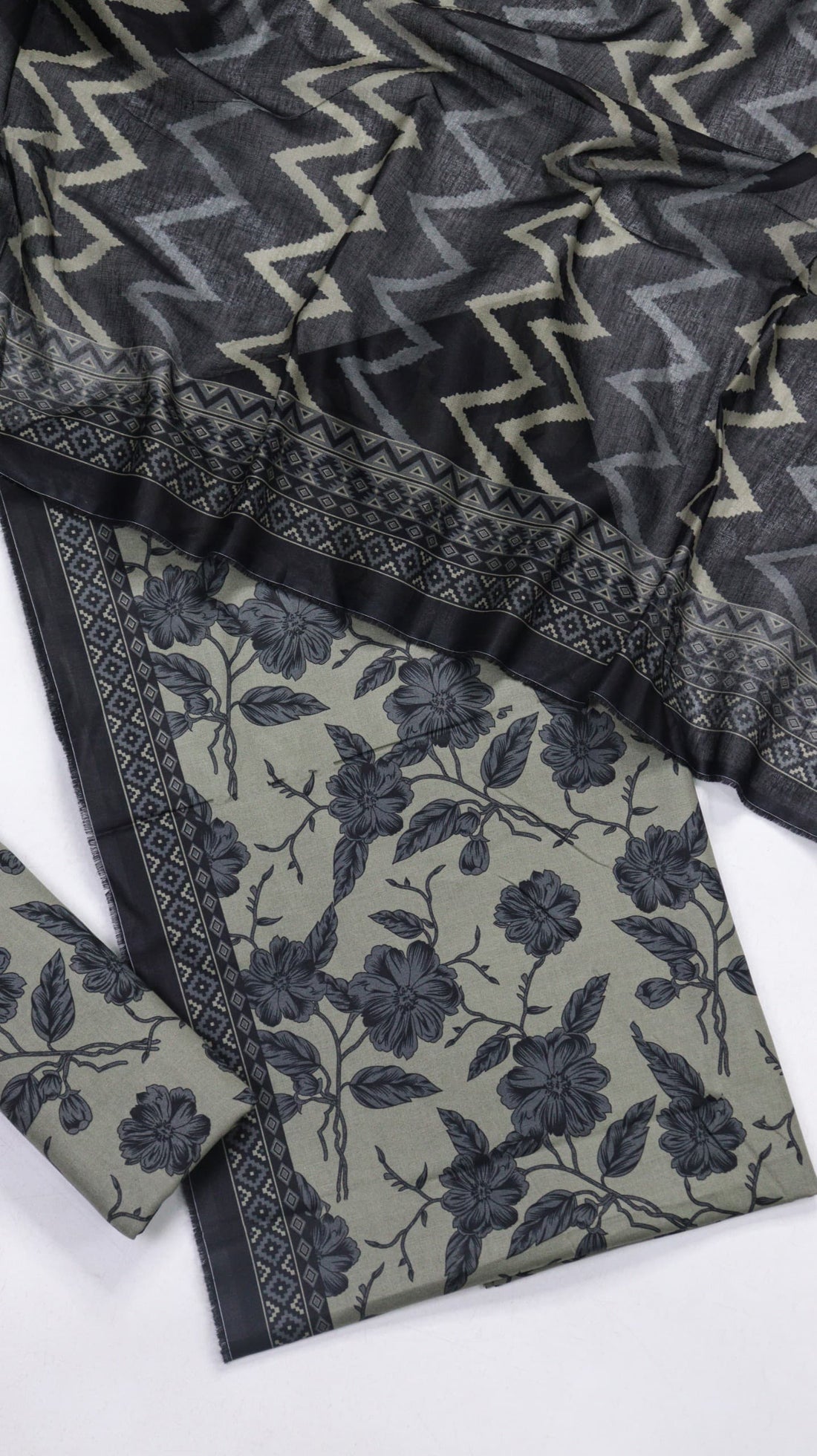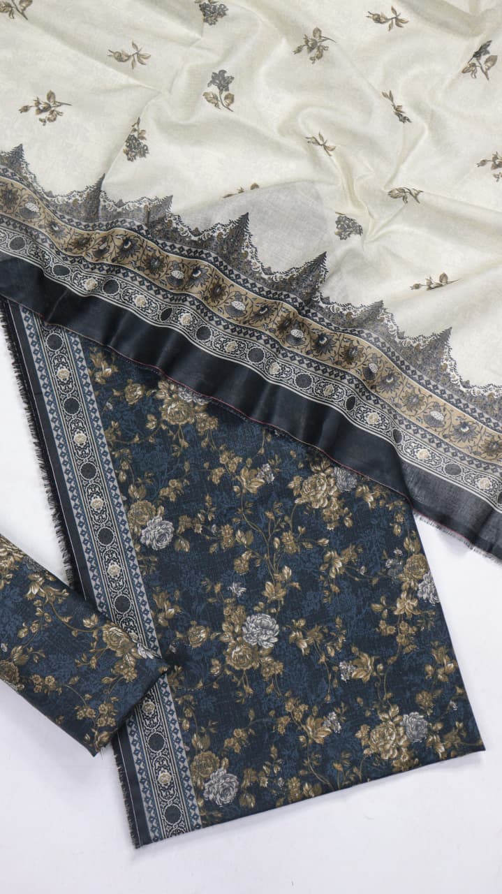 •Digital Printed Khaddar Chikankari Embroidered Shirt.•Digital Printed Khaddar Embroidered Dupatta.•Dyed Khaddar Trouser.