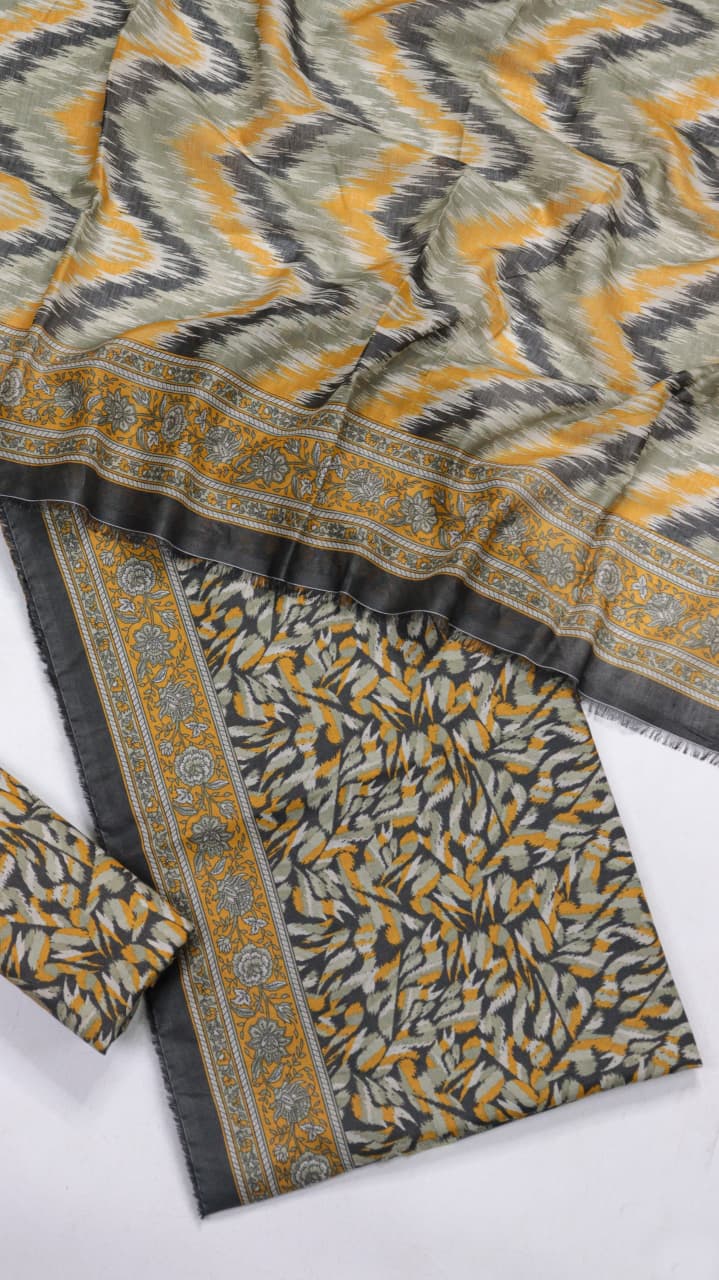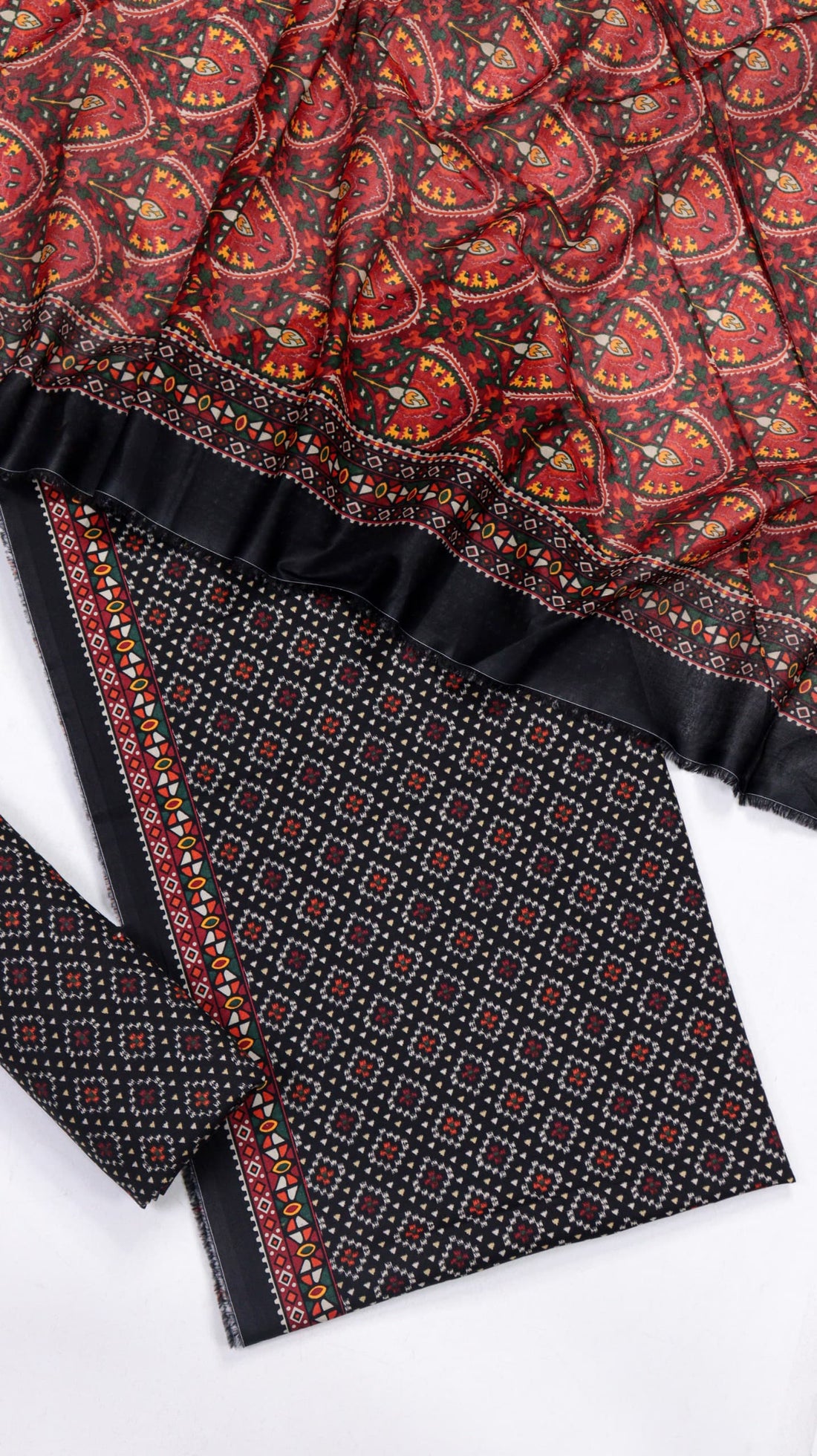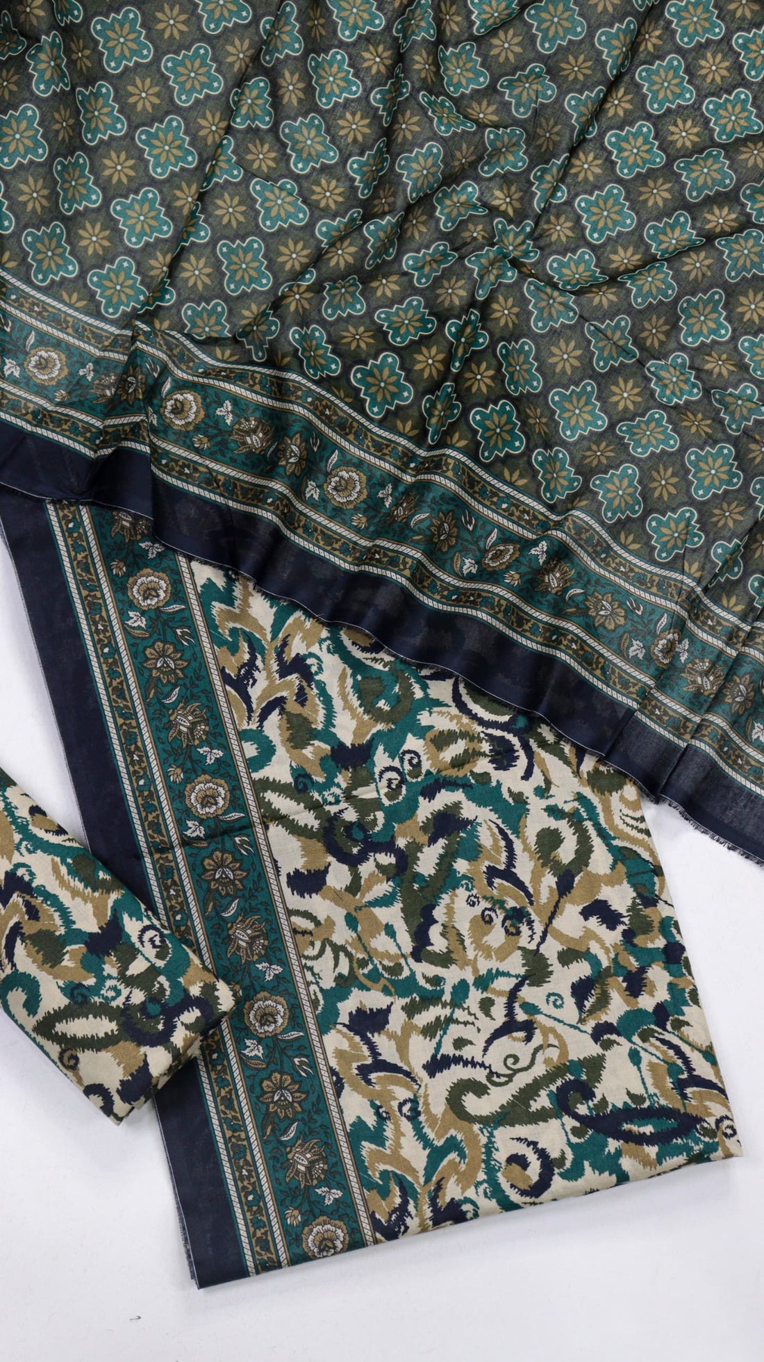 •Digital Printed Khaddar Chikankari Embroidered Shirt.•Digital Printed Khaddar Embroidered Dupatta.•Dyed Khaddar Trouser.
