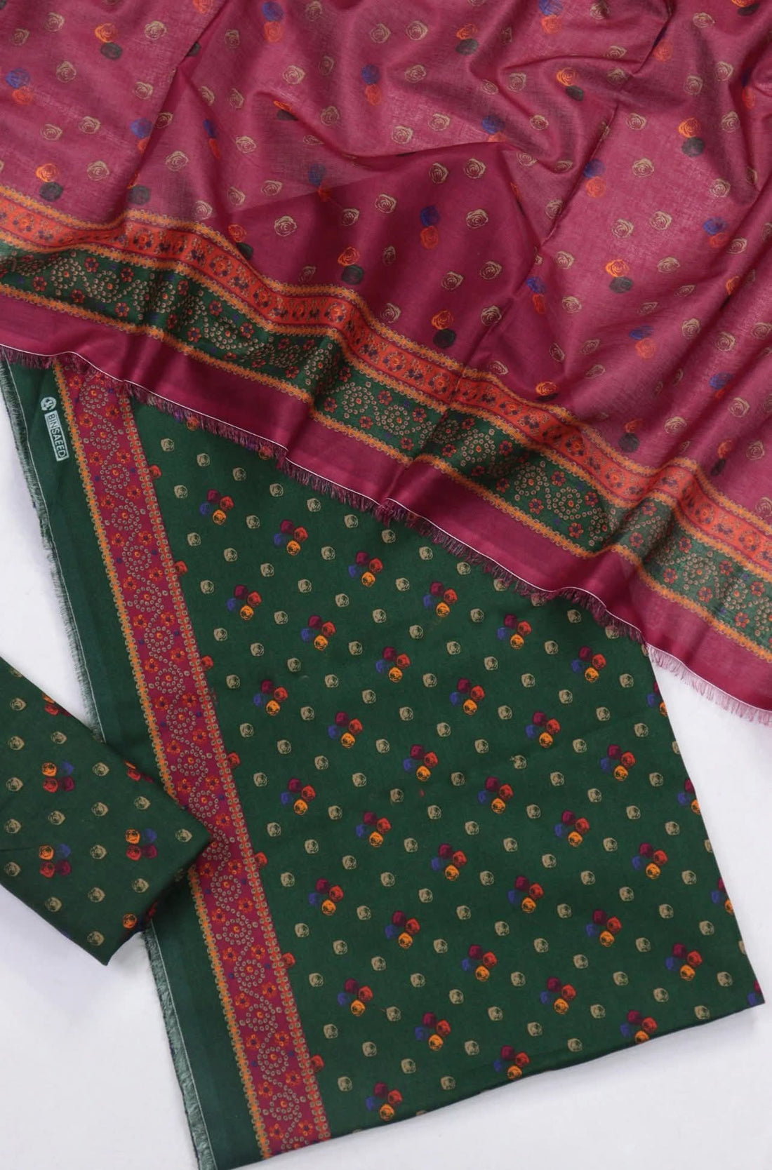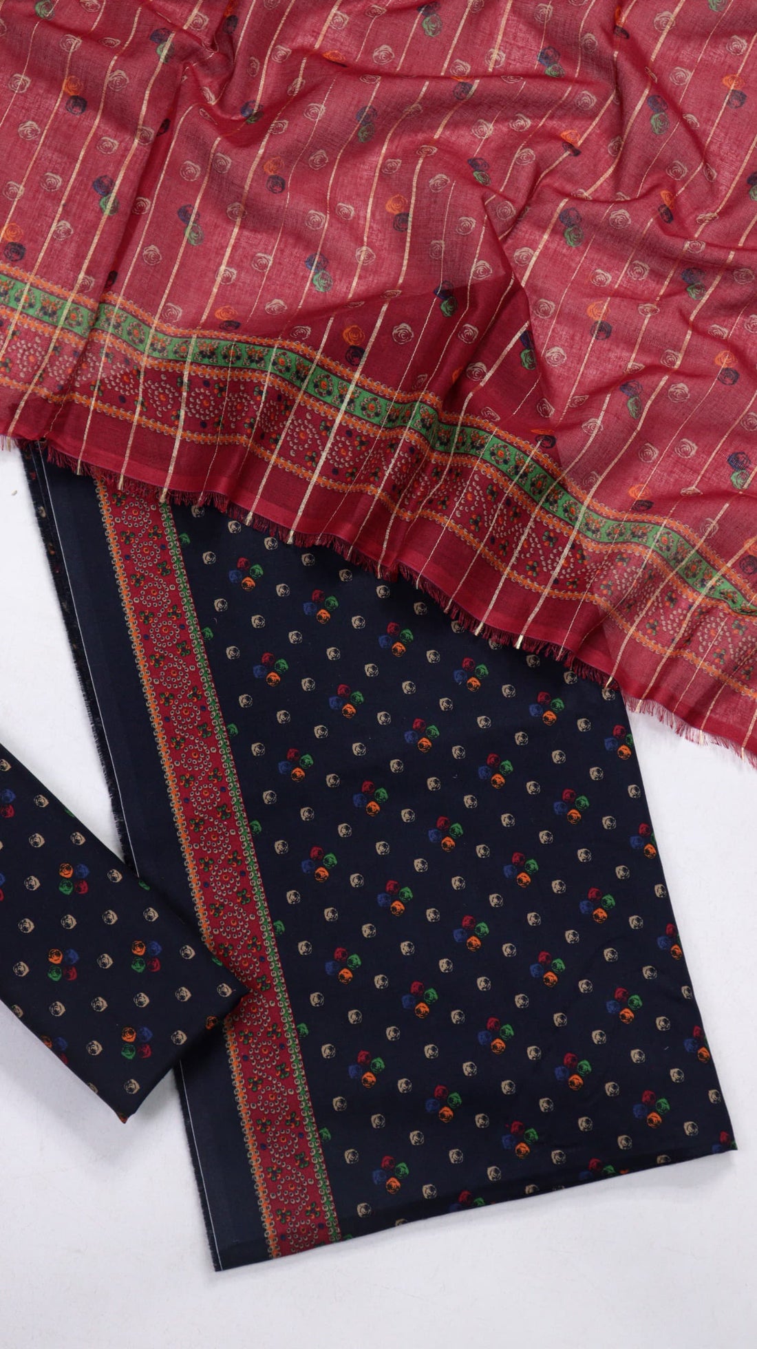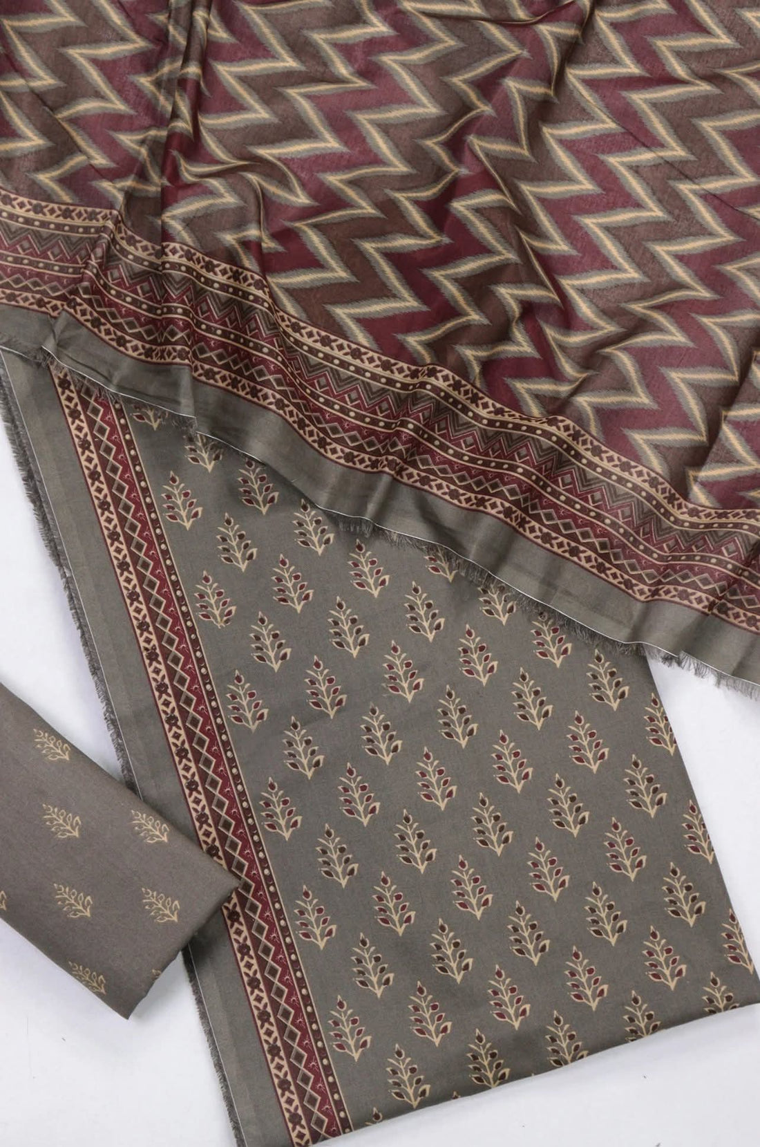 HZ Textile UNSTITCH Khadder Embroidered Chikankari With Embroidered Khadder Dupatta 3Piece Unstitched Collection _2025 D-01