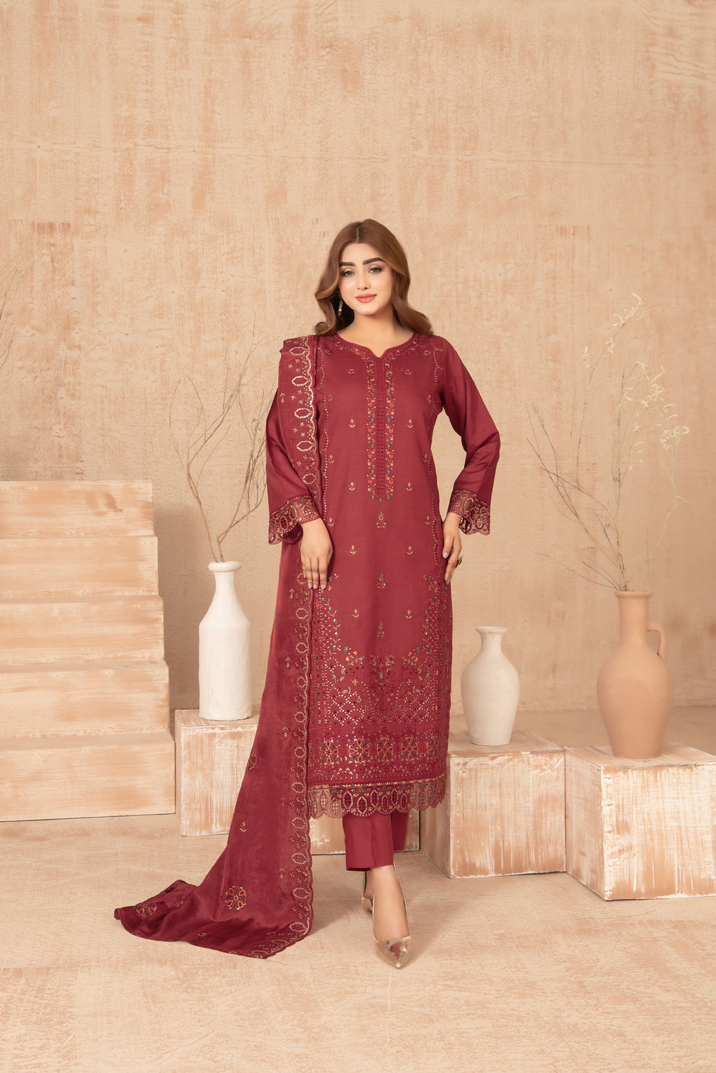 Tawakkal Dhoop Kinara Slub Viscous Embroidery 3Piece Unstitched Collection 2025 D-10