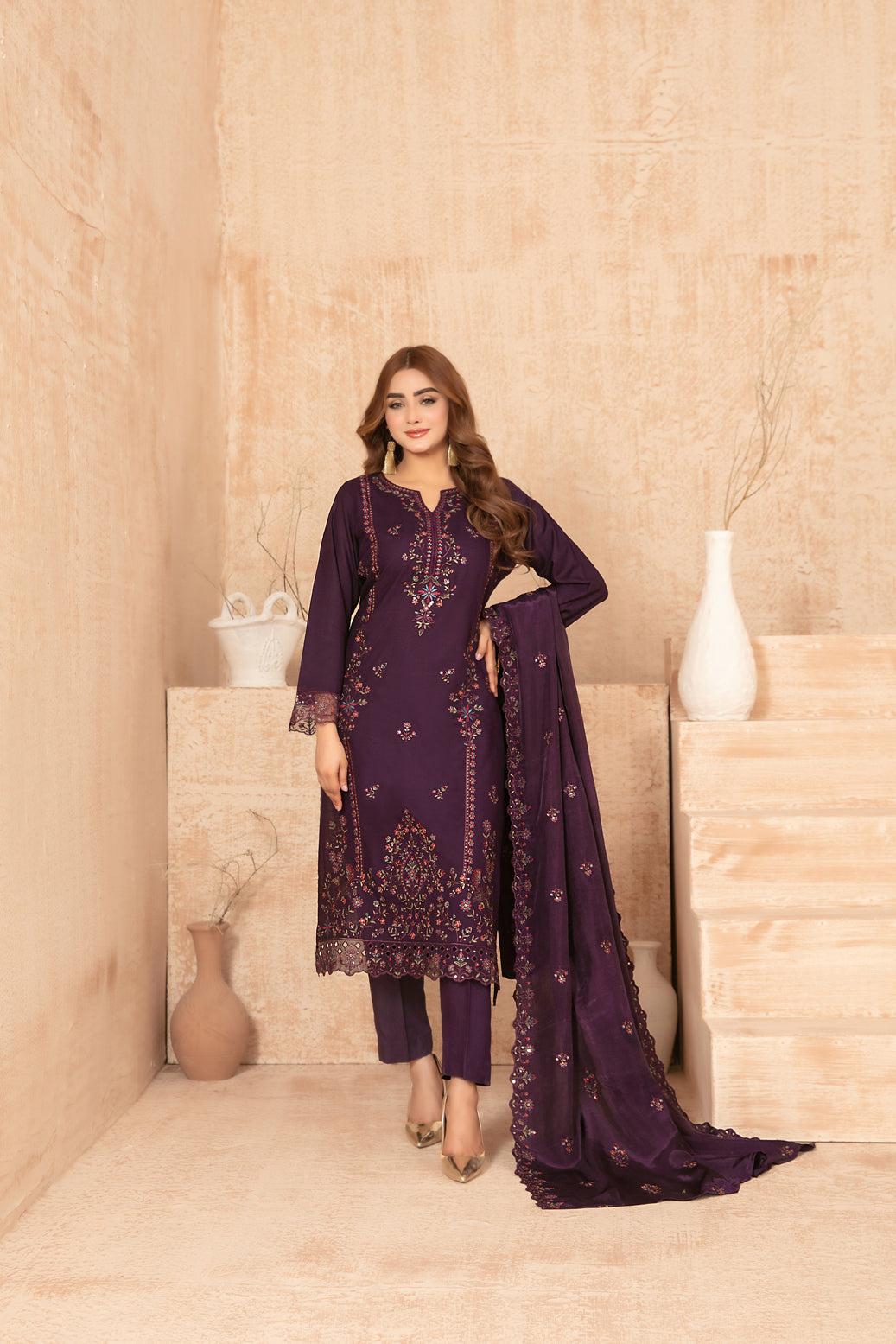 Cassa By Tawakkal Winter Dhanak Embroidery 3Piece Unstitched Collection 2025. D-04