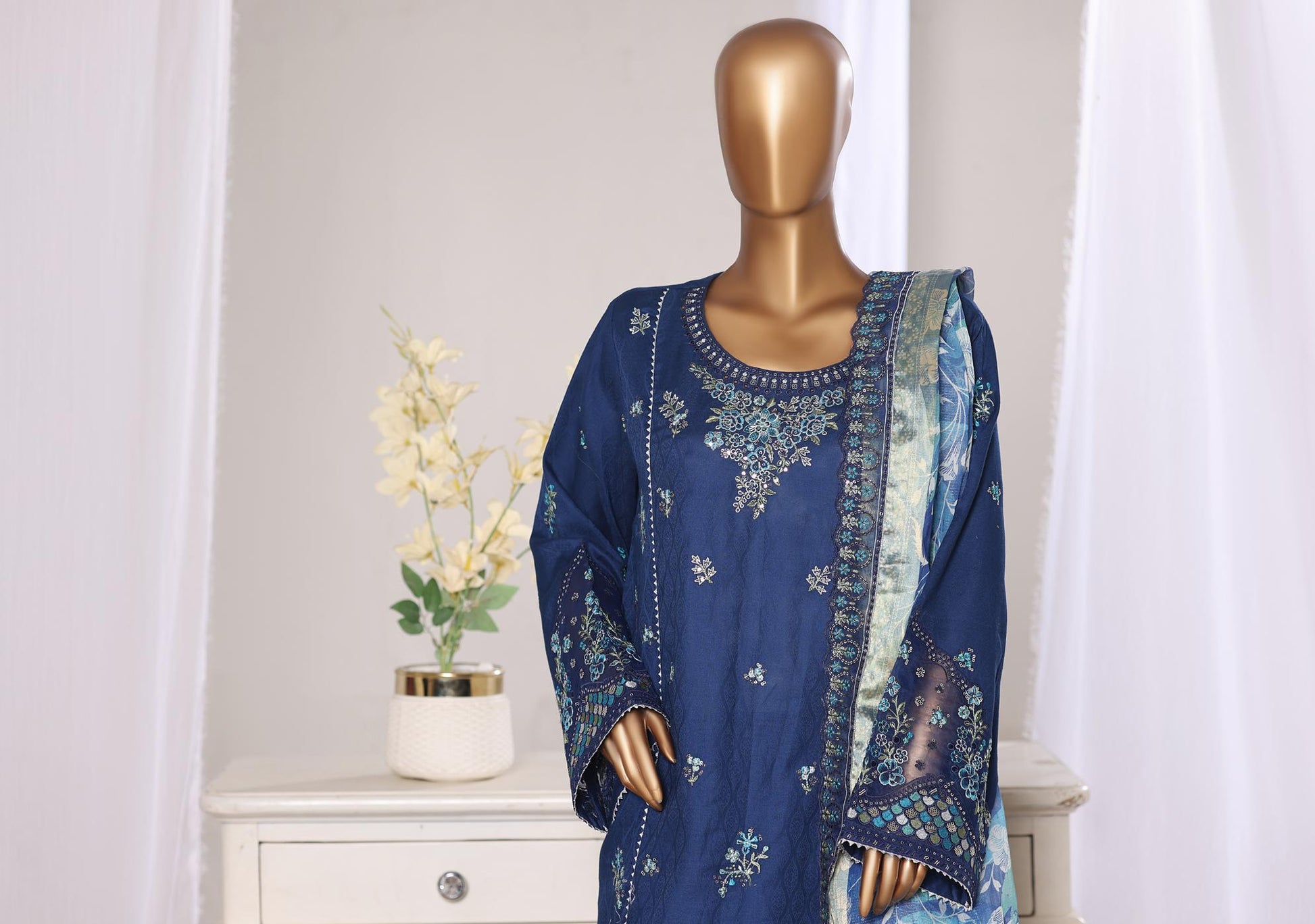 Bin Saeed Luxury Lawn Jacquard Fetive Embroidery 3Piece Stitched COLLECTION 2026. D-01