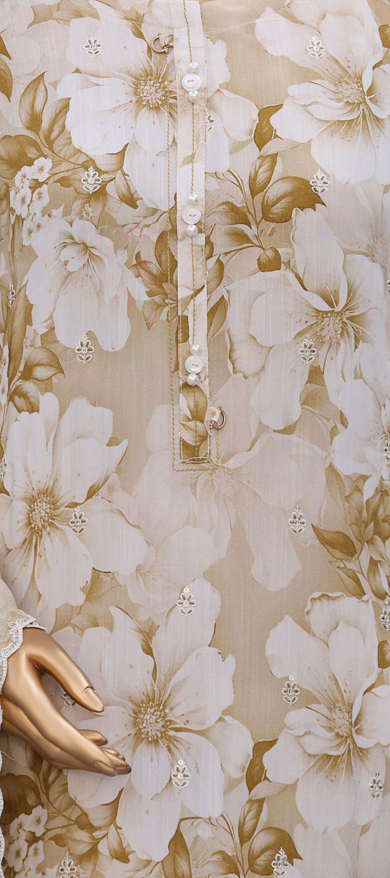 Shirt Stitched Raw Silk Printed With Embroidery đź‘• With Highlights Of Organza Border,CutWork & Stitching Details