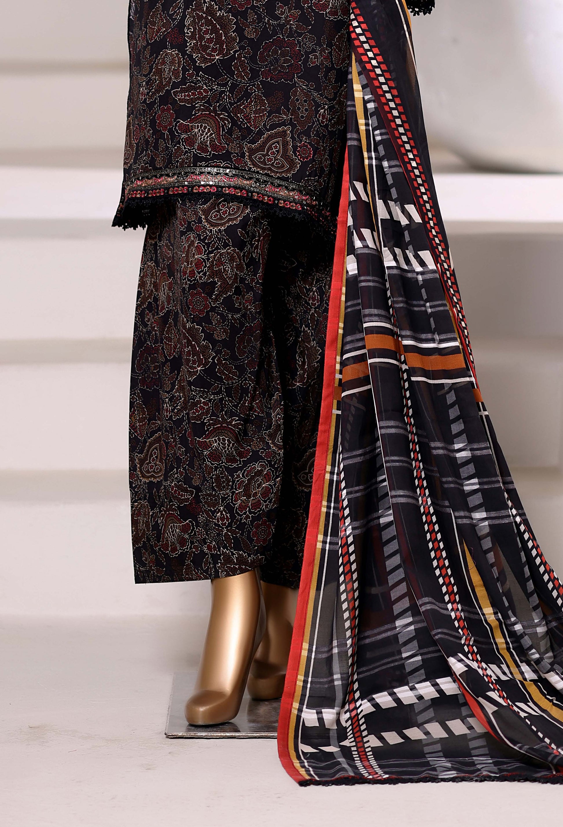 Sadabahar Malika Viscose Short Length Farshi Shalwar With Chiffon Printed Dupatta 3Piece Stitched Vol-02 Collection 2025 Black Color SDMVS- 005