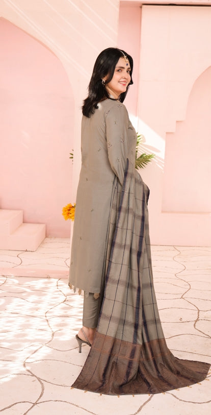 Delilah Unstitched Dyed Embroidered Winter Doriya With Fancy Shawl By Dr Haris D-02