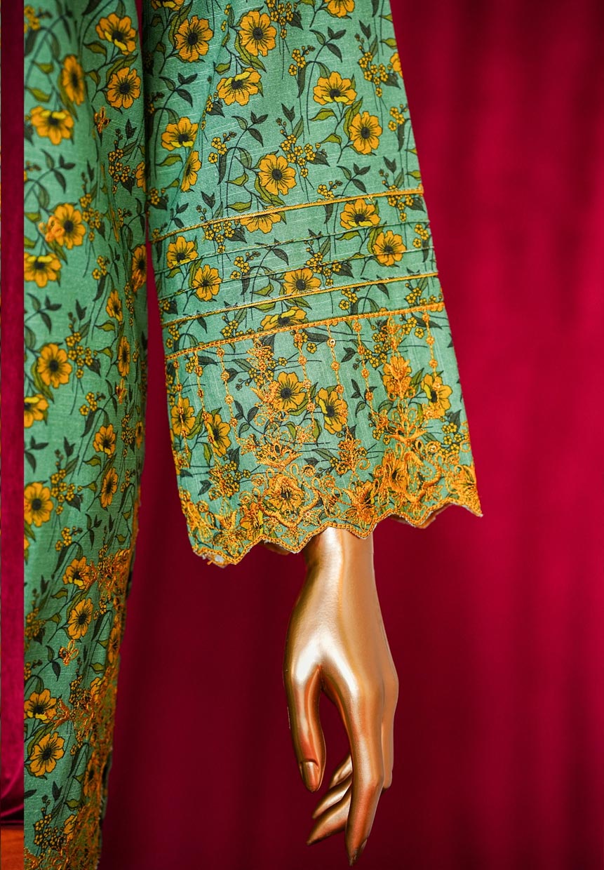 • Ready To Were Printed Embroidered Khaddar With Highlights Of Stitching Detail