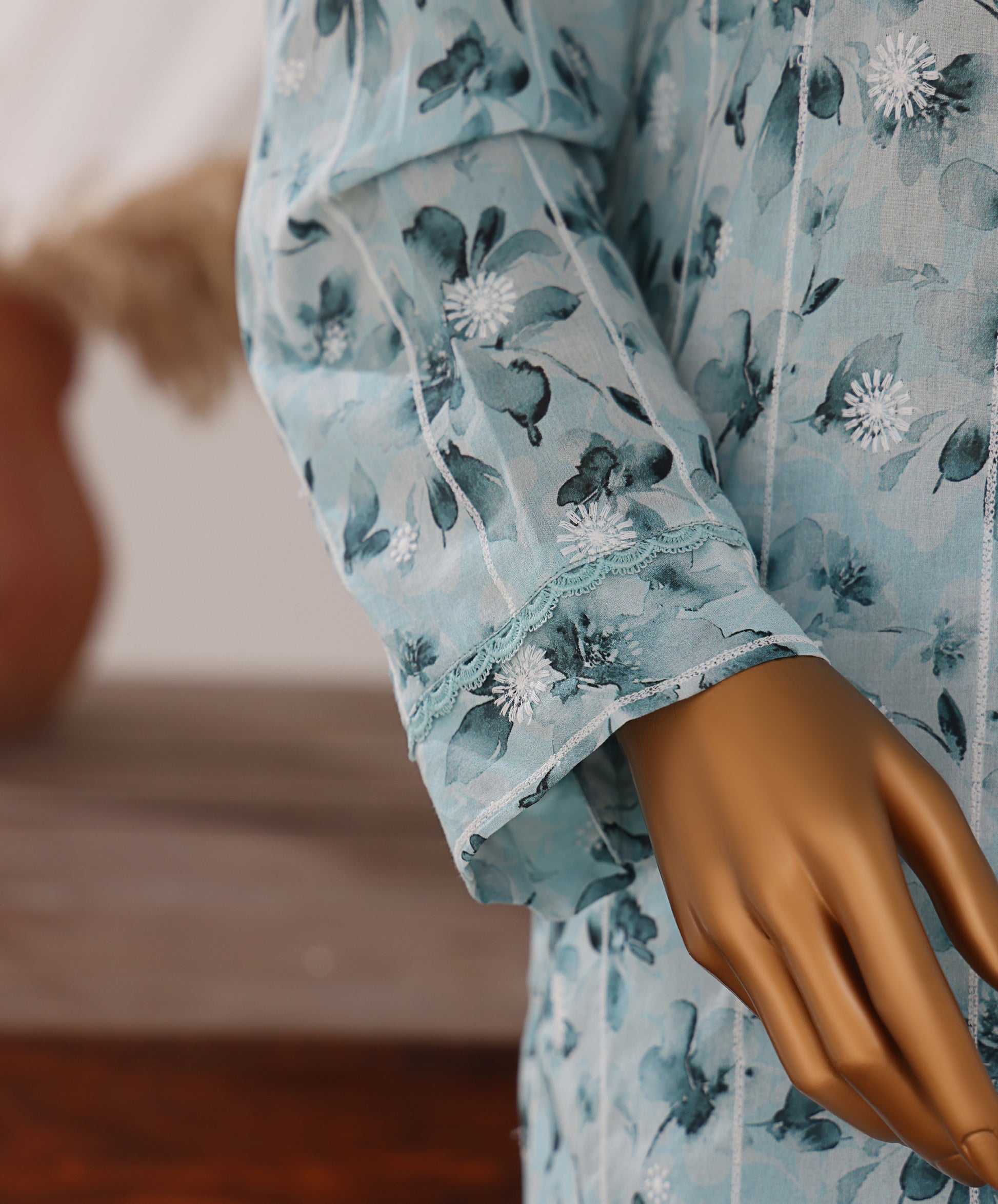 •Digital Printed Cotton Thread Embroidered Lawn Shirt.