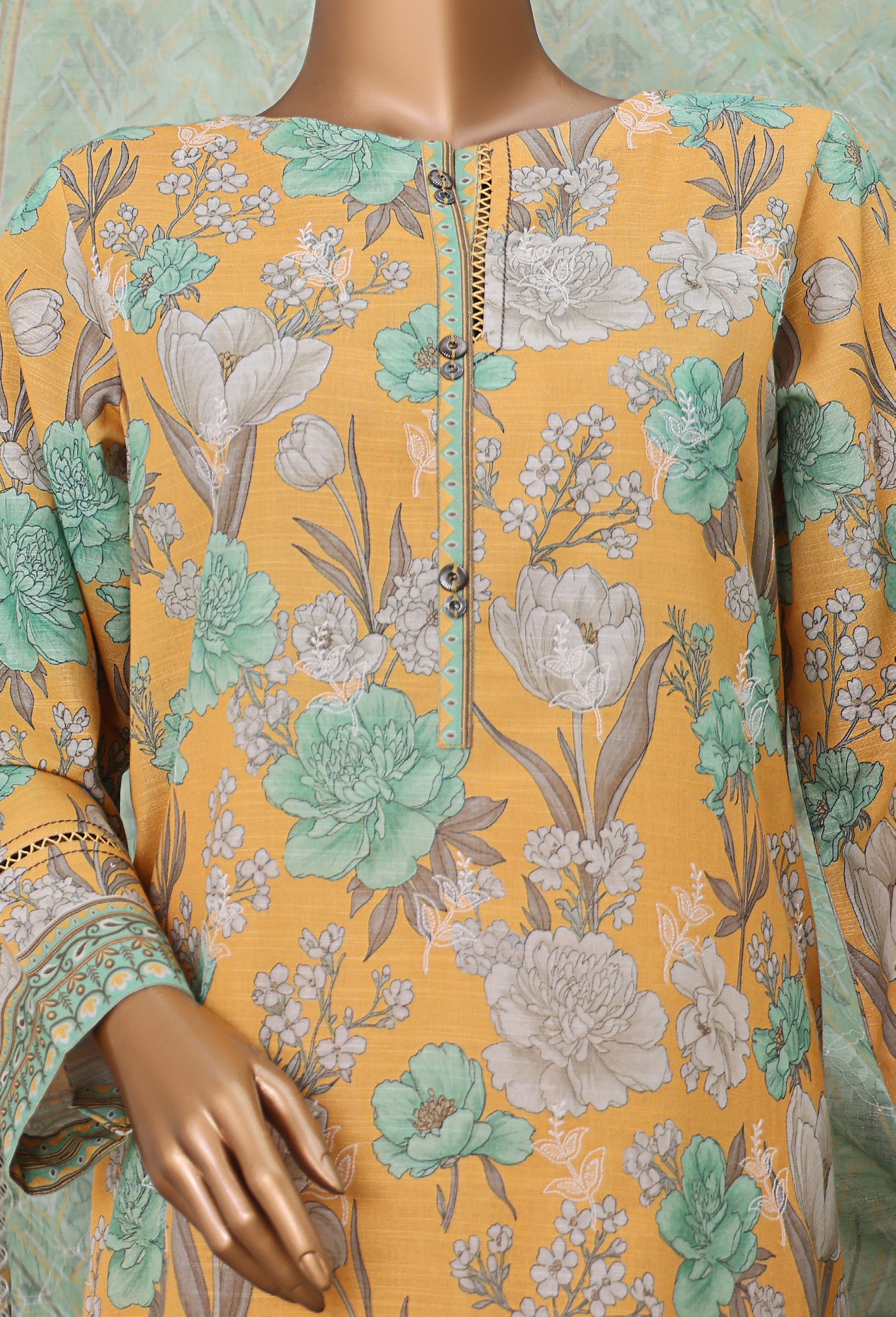 •Digital Printed Khaddar Chikankari Embroidered Shirt.