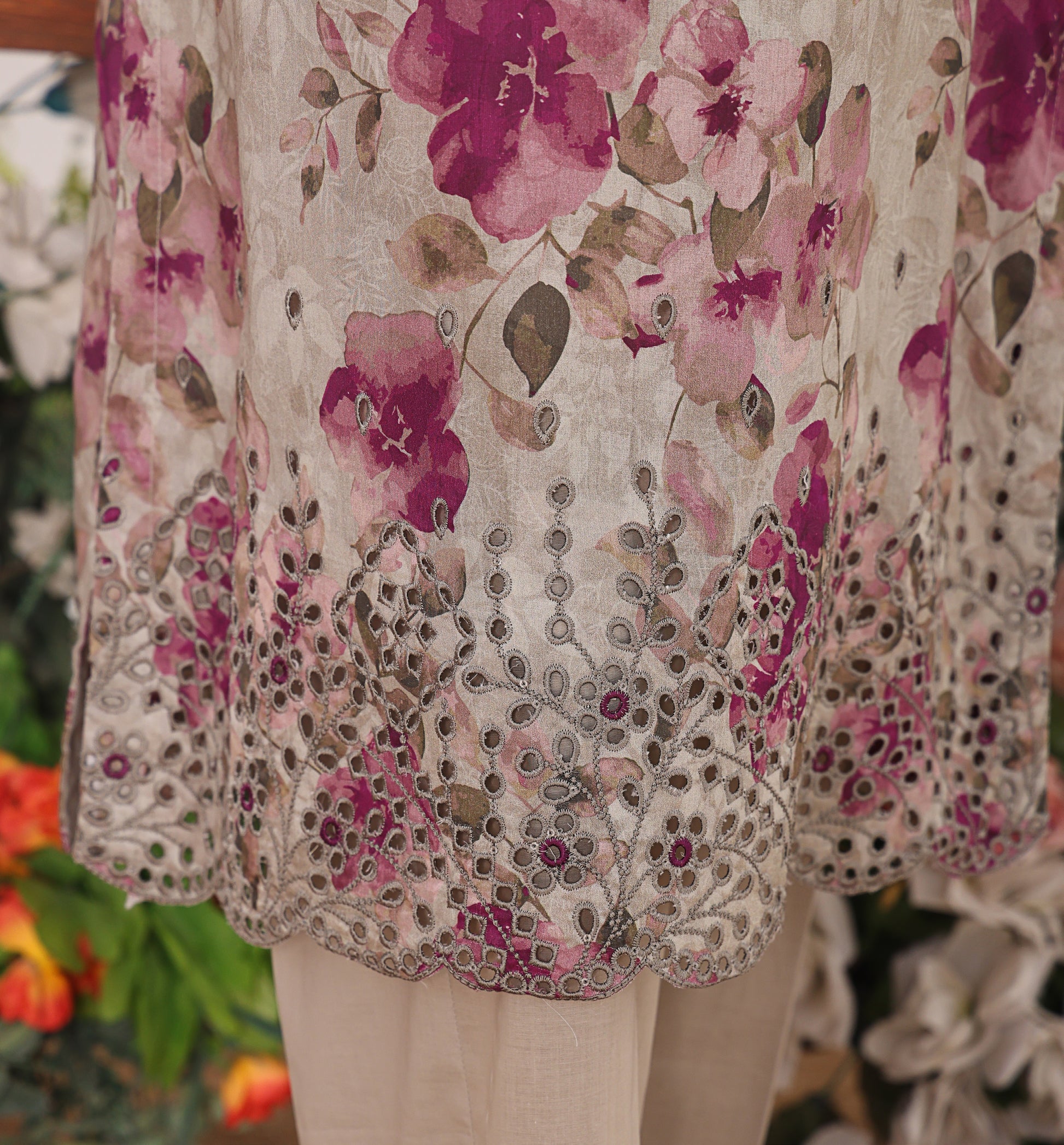 •Digital Printed Embroidered Jaal Dupatta