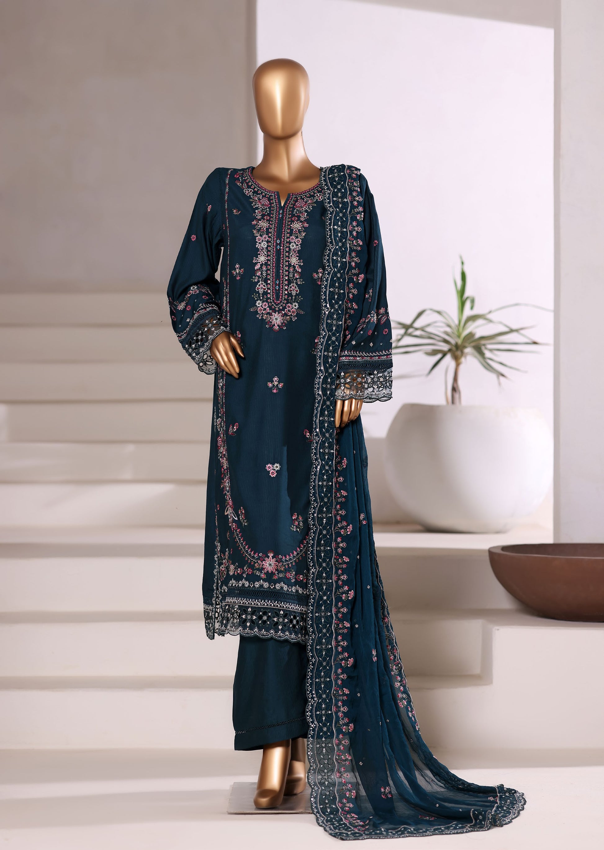 Sadabahar Luxury Viscous Embroidery With Chiffon Embroidery Dupatta Stitched Vol-01 Collection 2025. LEV-05 Bottle Green