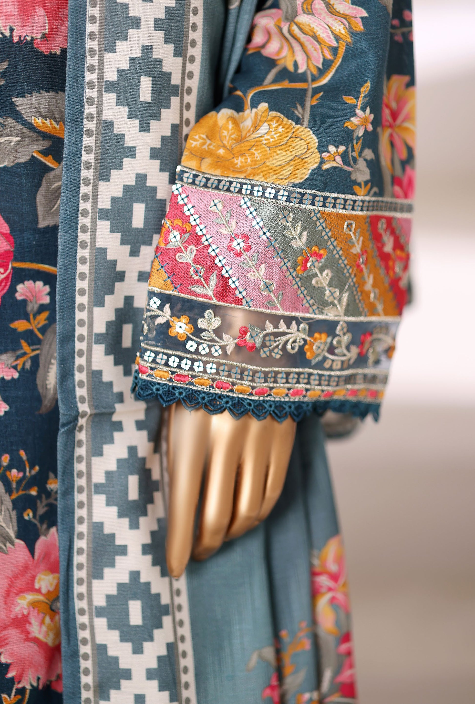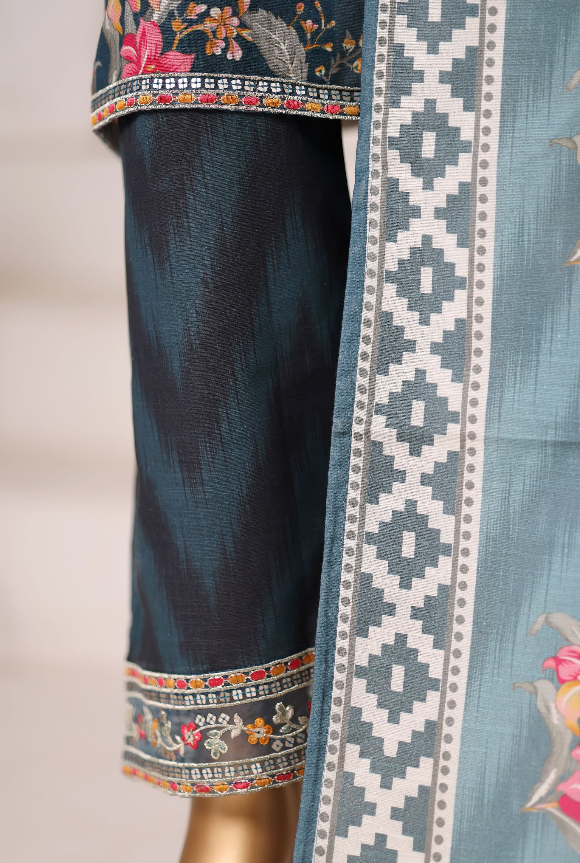 •With Khaddar Printed & Embroidery On Trouser.